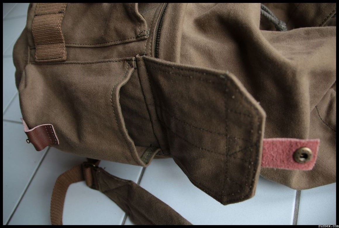 Sur le côté, deux poches qui comme celles sur le haut du sac sont à bouton pression, pressions qui tiennent tout juste assez, je me suis plusieurs fois retrouvé avec les poches ouvertes en balade, point négatif donc puisque le contenu des poches n’est pas vraiment sécurisé…