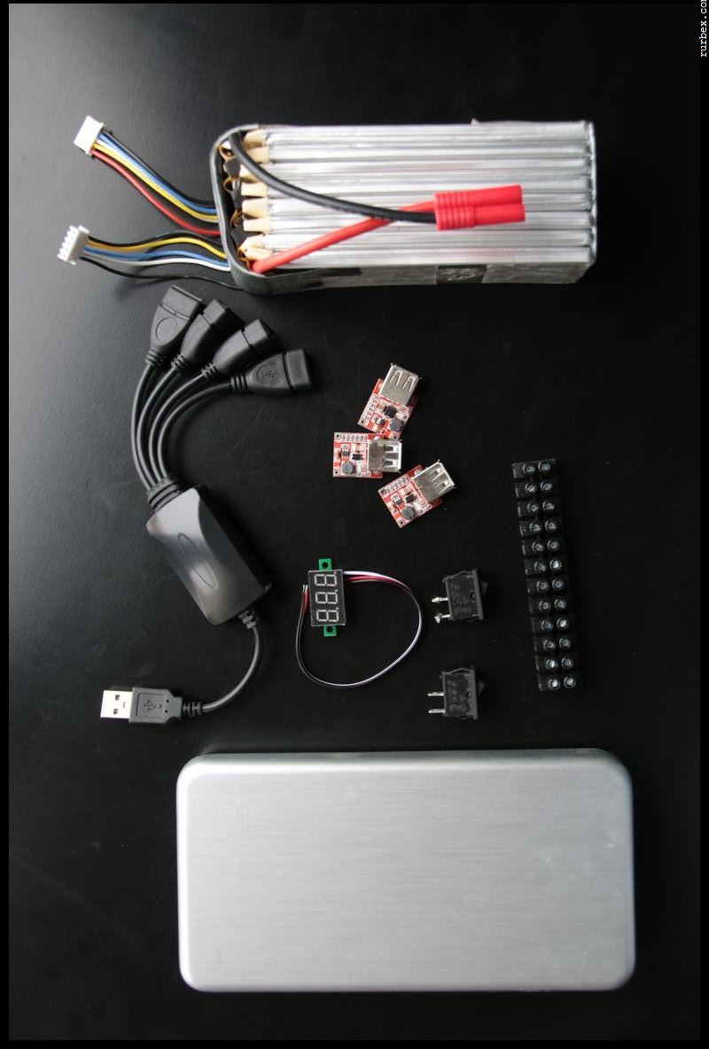 Pas besoin d’être un génie en électricité/électronique ! Un peu de rigueur, de logique et c’est dans la poche. La technologie de batterie la plus compacte actuellement est le Li-po, idéal donc quand la place est comptée. J’ai choisi de fournir un chargement par port USB car le plus adapté au matériel courant (téléphone, tablette, chargeur de batterie spécifique…) et aisément modifiable.