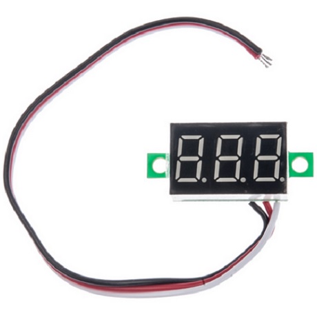 NB2 : Ce voltmètre nécessite 4 ou 5V pour fonctionner, donc non auto-alimenté par la batterie à moins de ne le brancher en sortie d’une puce à 5V ou de ne lui apporter une mini batterie accessoire, Cf plus loin.
