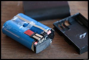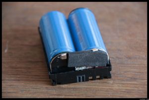 Une fois démonté on obtient 2 piles 18490 (3.7V) reliées en série pour atteindre les 7.4V et une puce électronique de contrôle.